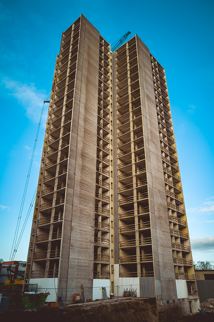 Statt Abriss setzen wir auf eine durchdachte Modernisierung: Die Bausubstanz der 13- und 23-stöckigen Wahrzeichen Wolfsburgs bleibt erhalten, während Technik, Dämmung und Ausstattung modernisiert und auf heutige Standards gebracht werden.