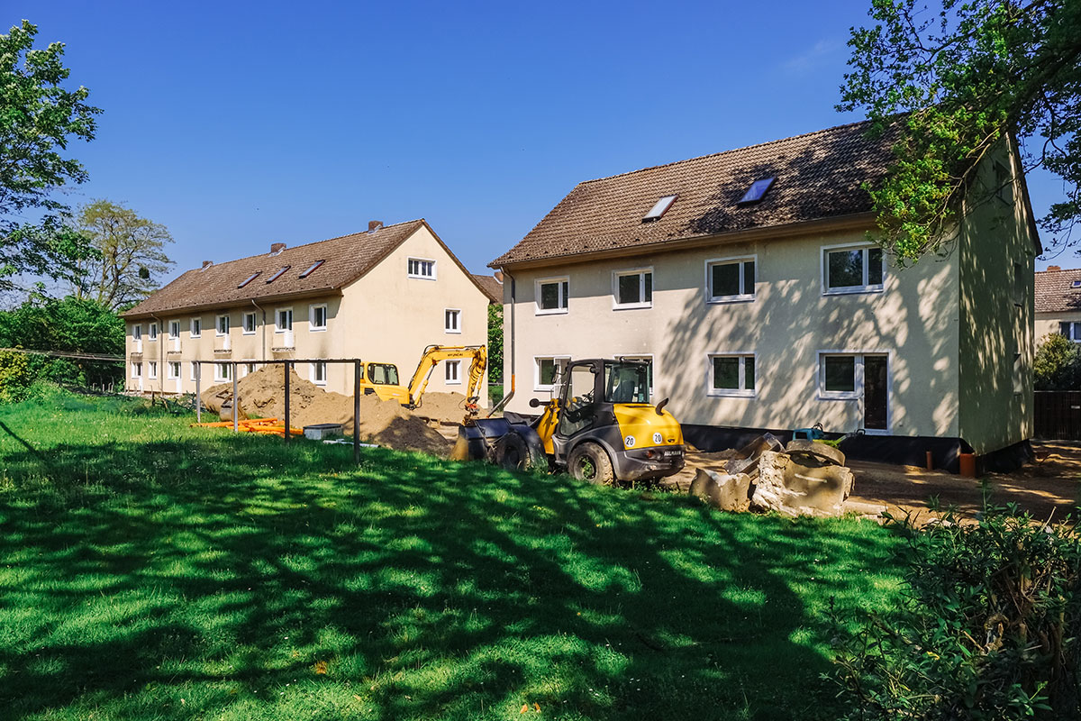 Mit dem Abschluss der formalen Abwicklung im Jahr 2024 wurde das energetische Sanierungs- und Erweiterungsprojekt am Haydnring 33–37 in Wolfsburg erfolgreich abgeschlossen. Zwei Bestandsgebäude mit ursprünglich 12 Wohneinheiten wurden umfassend modernisiert und durch Aufstockung auf insgesamt 18 Wohneinheiten erweitert. Die Gesamtinvestition lag bei rund 2,8 Mio. Euro.